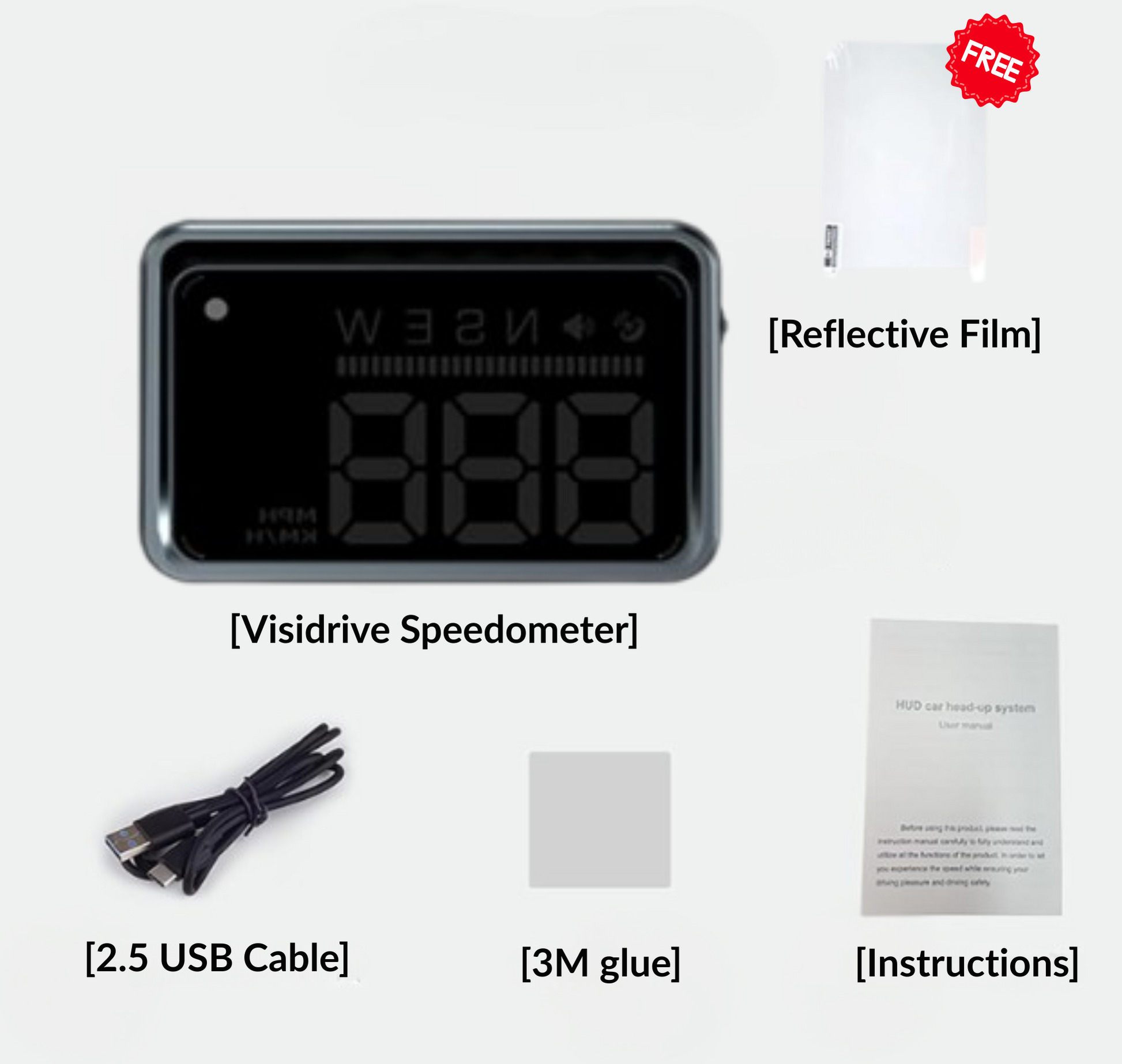 Your VisiDrive HUD includes everything you need to upgrade your car in seconds. Inside the box, you’ll find: